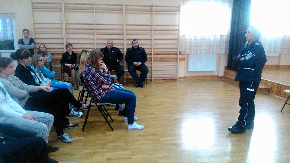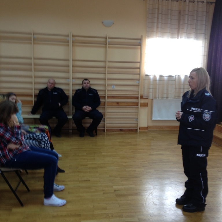 Dyrektor szkoły poinformował gimnazjalistów, że powodem przybycia policjantów jest wygłoszenie pogadanki na temat odpowiedzialności karnej nieletnich, przemocy, a także upowszechnienie wiedzy