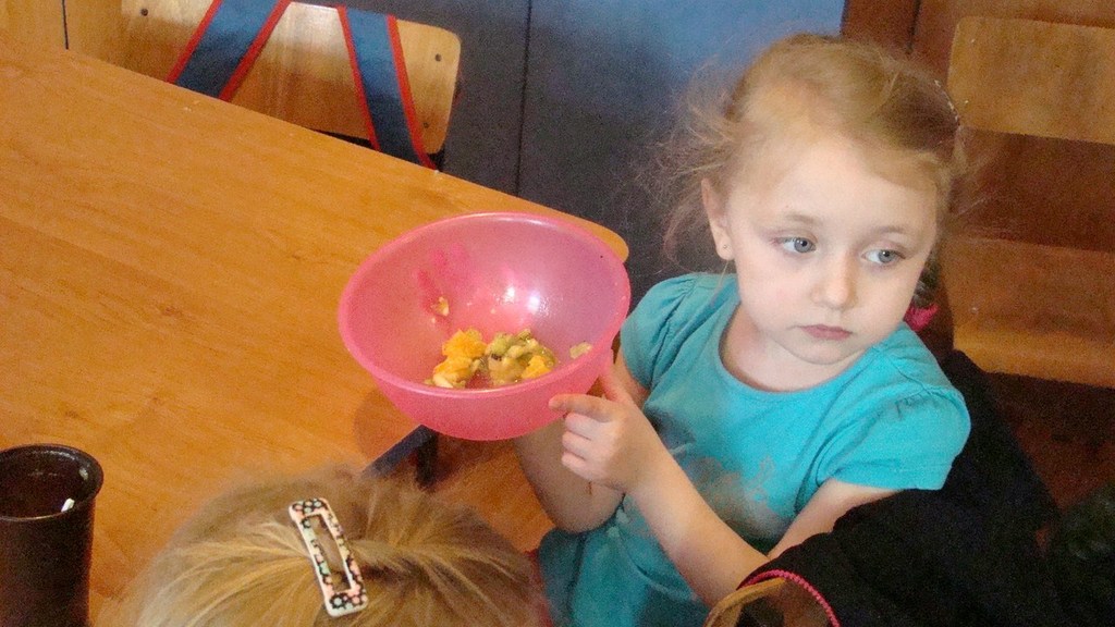 Na zakończenie działu dzieci samodzielnie przygotowały surówkę owocową. Obierały i kroiły owoce takie jak : banan, mandarynka i kiwi. Wykorzystywały do tego celu plastikowe noże. Składniki wymieszano razem. Kiedy owoce puściły pyszny sok, wszyscy częstowaliśmy się zdrową surówką owocową.