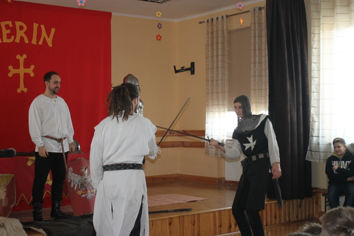 W czwartek 5 marca odbył się w naszej szkole pokaz historyczny bractwa „Kerin”. Jego członkowie przybliżyli nam czasy średniowiecza związane z kulturą i obyczajami rycerskimi.