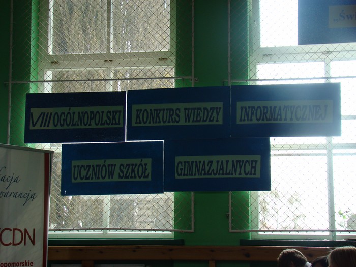 W dniach 15-16 kwietnia w Szczecinie odbył się finał VIII OGÓLNOPOLSKIEGO KONKURSU WEDZY INFORMATYCZNEJ UCZNIÓW SZKÓŁ GIMNAZIALNYCH. Naszą szkołę reprezentował Tomasz Kapuśniak - kl.III G zdobywając 14 lokatę.