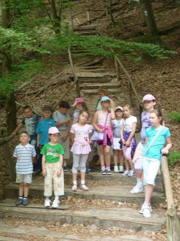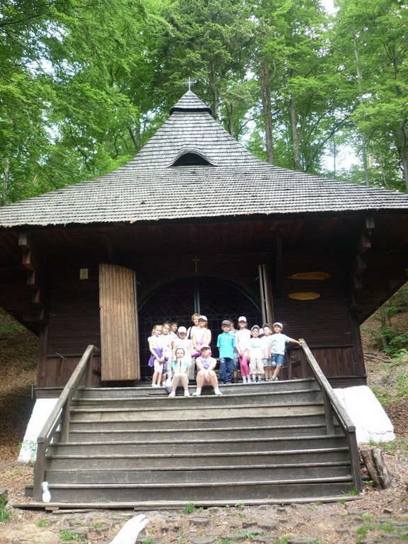 z ciekawą historią dotyczącą tego miejsca. Spacerowaliśmy po stromych schodach wokół kaplicy. Następnie odwiedziliśmy ścieżkę edukacyjną w Parku Jurajskim. Dzieci