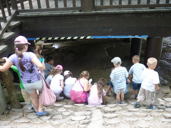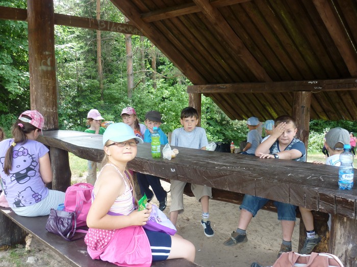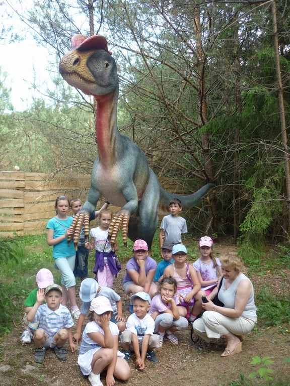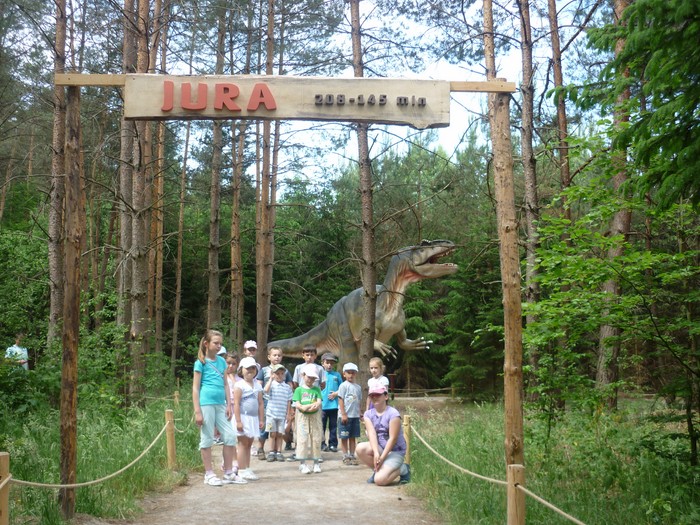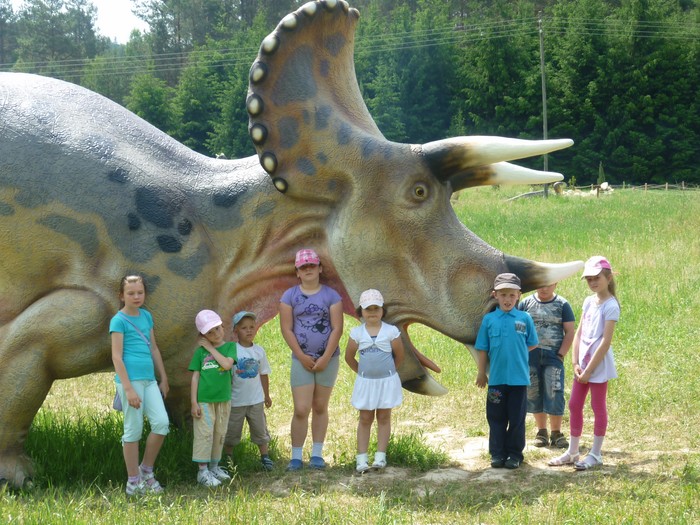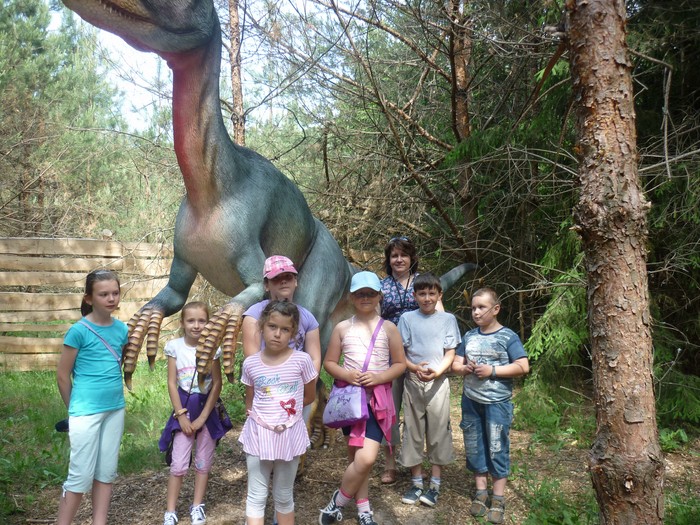 z wielkim zainteresowaniem oglądały dinozaury, a następnie same próbowały odnajdywać ich szczątki ukryte w piasku na… placu zabaw. Następnie pojechaliśmy nad zalew, gdzie spacerowaliśmy po plaży i molo. Aby nieco ochłonąć po niecodziennych wrażeniach zjedliśmy duże porcje lodów. Po krótkim odpoczynku zwiedziliśmy Sanktuarium, Mini ZOO oraz Muzeum Wsi. Wycieczkę zakończyliśmy nad Wodną Kapliczka skąd zmęczeni, ale bardzo zadowoleni wróciliśmy do domu.
