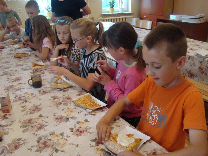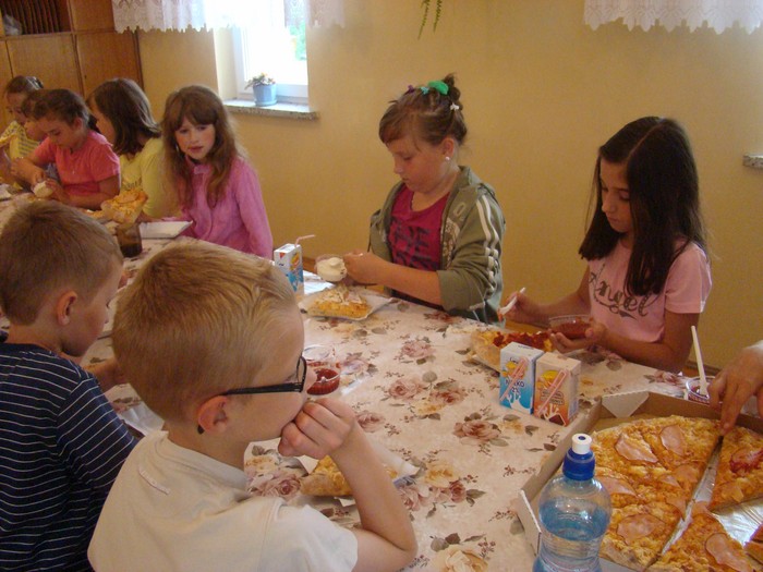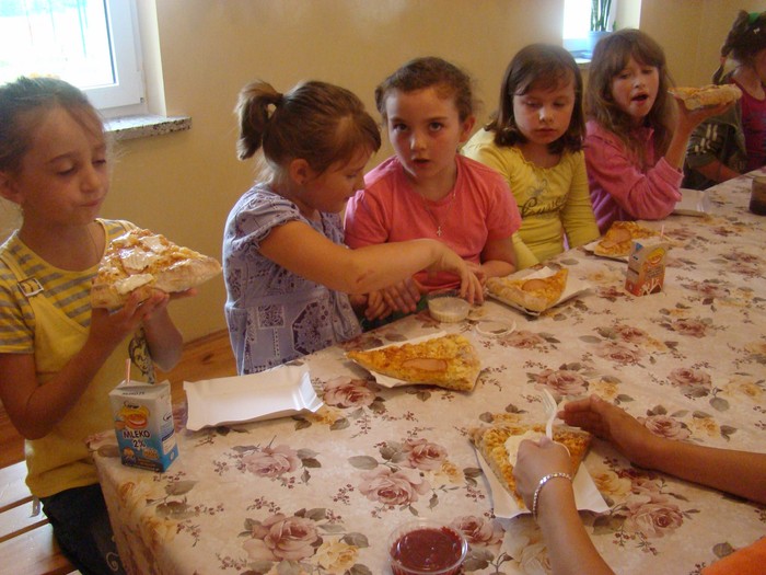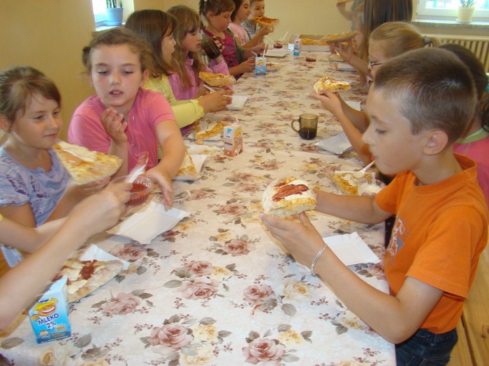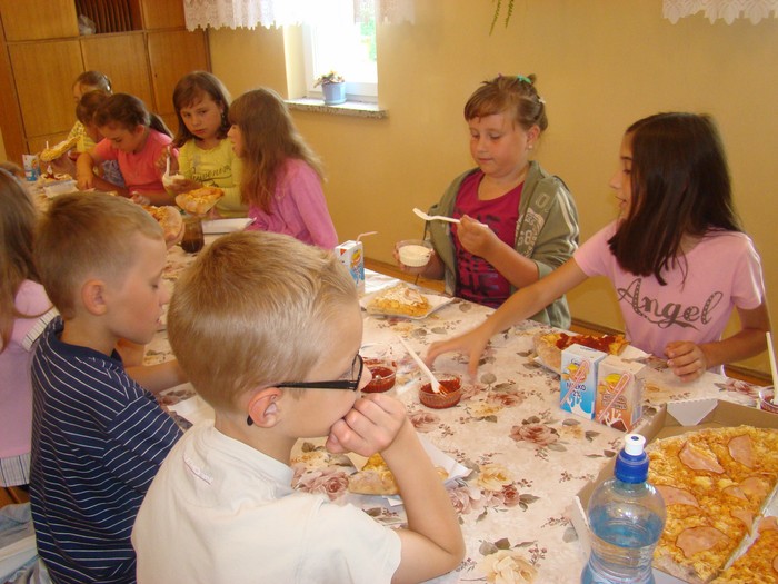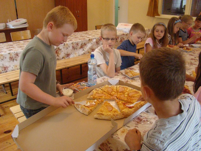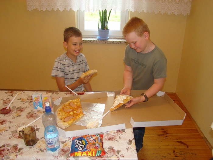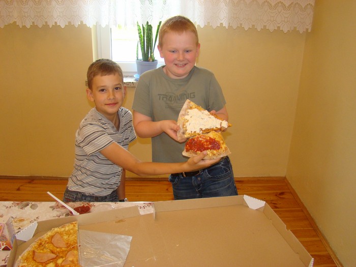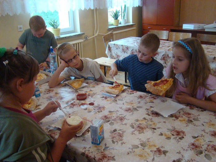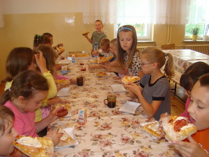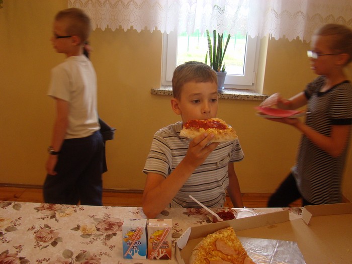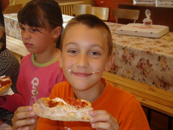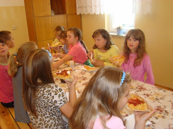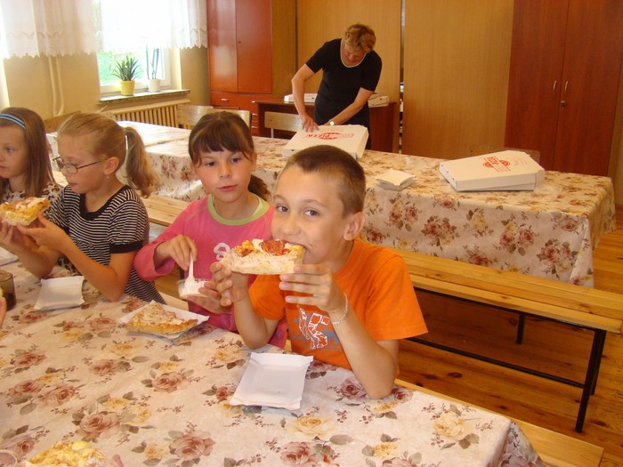 Pizza to ulubione danie wielu osób. Nasi uczniowie też należą do tej grupy. Dzisiaj mieliśmy prawdziwą ucztę „pizzową”Główni goście to uczniowie klasy I i II Szkoły Podstawowej. O godzinie 1030 pod szkołę podjechał samochód z pizzą. Wszyscy bardzo czekali na tą dostawę. Przypomnieliśmy sobie jak należy zachować się przy stole i jak kulturalnie jeść. Uczta się udała. Po zajęciach nikt nie śpieszył się do domu na obiad, ponieważ każdy miał pełny brzuszek.