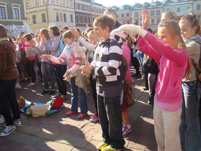 Na Rynku wystąpił Zespół Tańca Nowoczesnego „Raptis”- z MDK w Zamościu z Norbertem Kowalczukiem, wicemistrzem świata. . Uczestnicy wypuścili w niebo balony z „Dobrą Nowiną dla mojego brata”.
