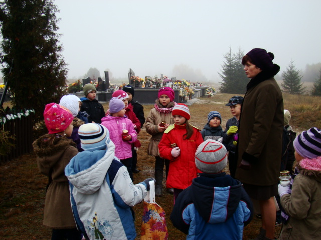 Dzień Wszystkich Świętych, a następnie Zaduszki to dni pamięci o tych co już odeszli, których już nie ma wśród nas. Polska tradycja nakazuje odwiedzanie w te dni grobów swoich bliskich, zapalenie zniczy, złożenie wieńców i kwiatów. Zrobili to również najmłodsi uczniowie naszej szkoły. Odwiedzając miejsca wiecznego spoczynku, zachowali należytą powagę. Wiedzą, że cmentarz jest miejscem gdzie spoczywają nasi najbliżsi; dziadkowie, rodzeństwo, nasi rodzice, również najbliżsi naszych znajomych. Ich też należy uszanować.