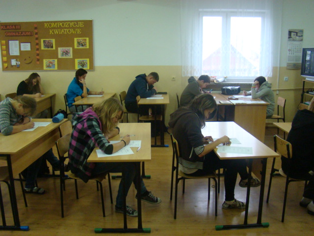 Przystapiło do niego 16-tu uczniów z klas I-III gimnazjum. Test składał się