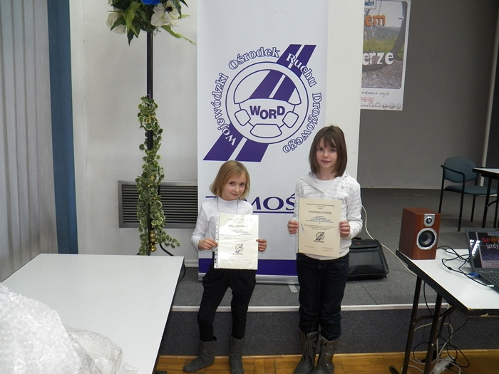 Uczennice otrzymały nagrody w postaci dyplomów kalendarzy, pakietów ,,brd” (tj. kask rowerowy, zestaw oświetleniowy, kamizelkę odblaskową, smycz odblaskową, pulsacyjny brelok odblaskowy z diodami LED, podręcznik zawierający podstawowe informacje z zakresu ruchu drogowego). Praca Pauli Milniczuk znalazła się na pierwszej stronie kalendarza na 2012 rok. Uczennice do konkursu przygotowywała pani Alina Dorota Traczyk.