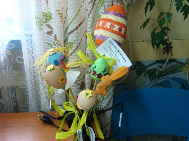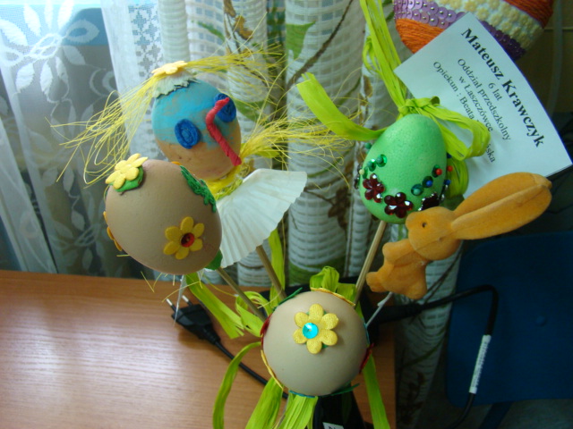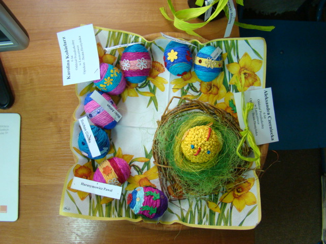 28.03.2012 r. dzieci oddziału przedszkolnego przystąpiły do konkursu plastycznego pt. „Wielkanocny stroik” organizowanego przez Komunalną Bibliotekę w Łaszczówce. Do etapu powiatowego zakwalifikowały się trzy prace: Karoliny Kobielarz, Mateusza Krawczyka i Aleksandry Czernieckiej.