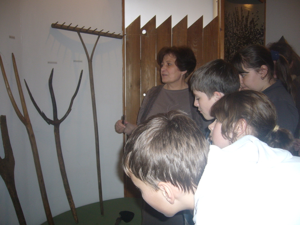 Ostatnim elementem zwiedzania była wystawa dotycząca życia na wsi. Uczniowie mogli zobaczyć przedmioty służące do wypieku chleba, tkania lnu, ubijania masła, plecenia koszy. Podziwiali także dawne stroje, które noszno w naszym regionie.