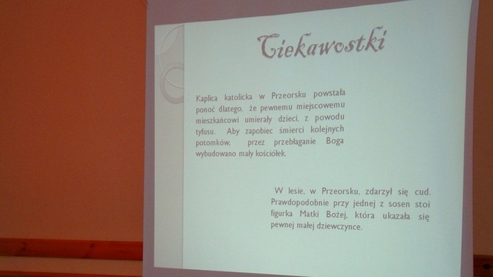 i Weronika Pyzik realizowały temat zainspirowany losami pana Kazimierza Kozłowskiego byłego współwłaściciela majątku Polesie. Praca drugiej grupy - Ani Dumicz i Justyny Drożdż dotyczyła historii cmentarza prawosławnego znajdującego się w Przeorsku. Kronikę projektu prowadziła. Kamila Hostyńska.