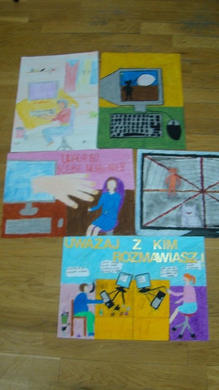 Nadesłane prace były ściśle związane z tematem. W sposób bardzo komunikatywny pod względem plastycznym przekazały najważniejsze treści jakie niesie za sobą korzystanie z Internetu.