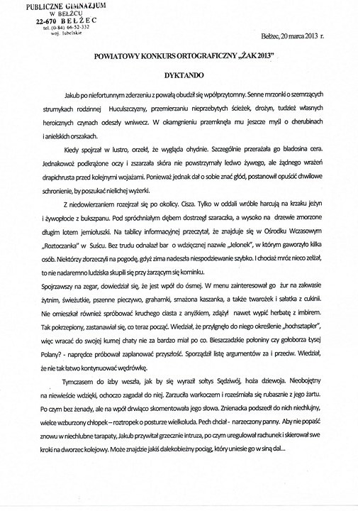 w Bełżcu odbył się finał Powiatowego Konkursu Ortograficznego „Żak 2013”.