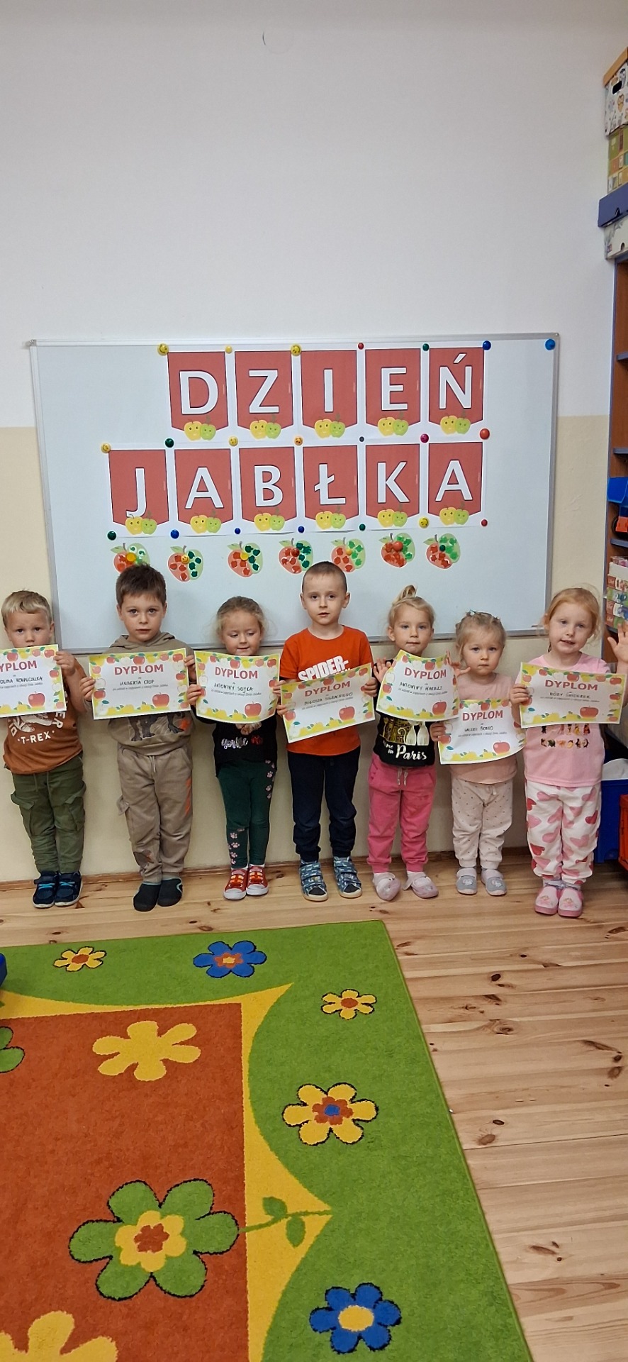 Celem zajęć i wspólnej zabawy była integracja wszystkich dzieci oraz zachęcanie ich do spożywania owoców, a w szczególności jabłek i to pod różnymi postaciami. To był bardzo ciekawy dzień w przedszkolu. Dzieci wszechstronnie poszerzały wiedzę o jabłku. Poznawały różne gatunki jabłek, rozpoznawały kształt, zapach, kolor, smak. Tego dnia dzieci również śpiewały wspólnie piosenki o jabłuszku, rozwiązywały zagadki, oraz uczestniczyły w konkursach grupowych. Każda grupa wykonała pracę plastyczną przedstawiającą jabłko.