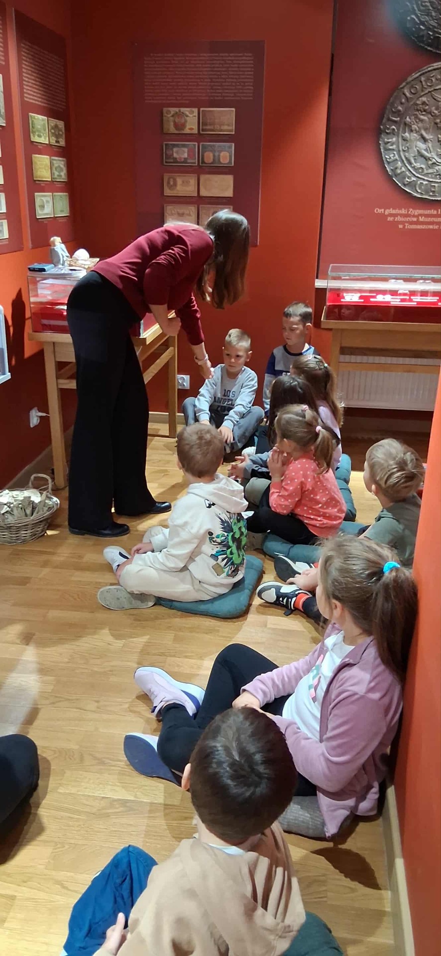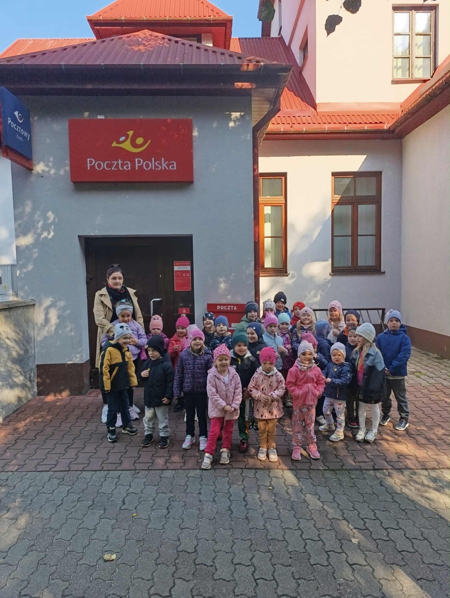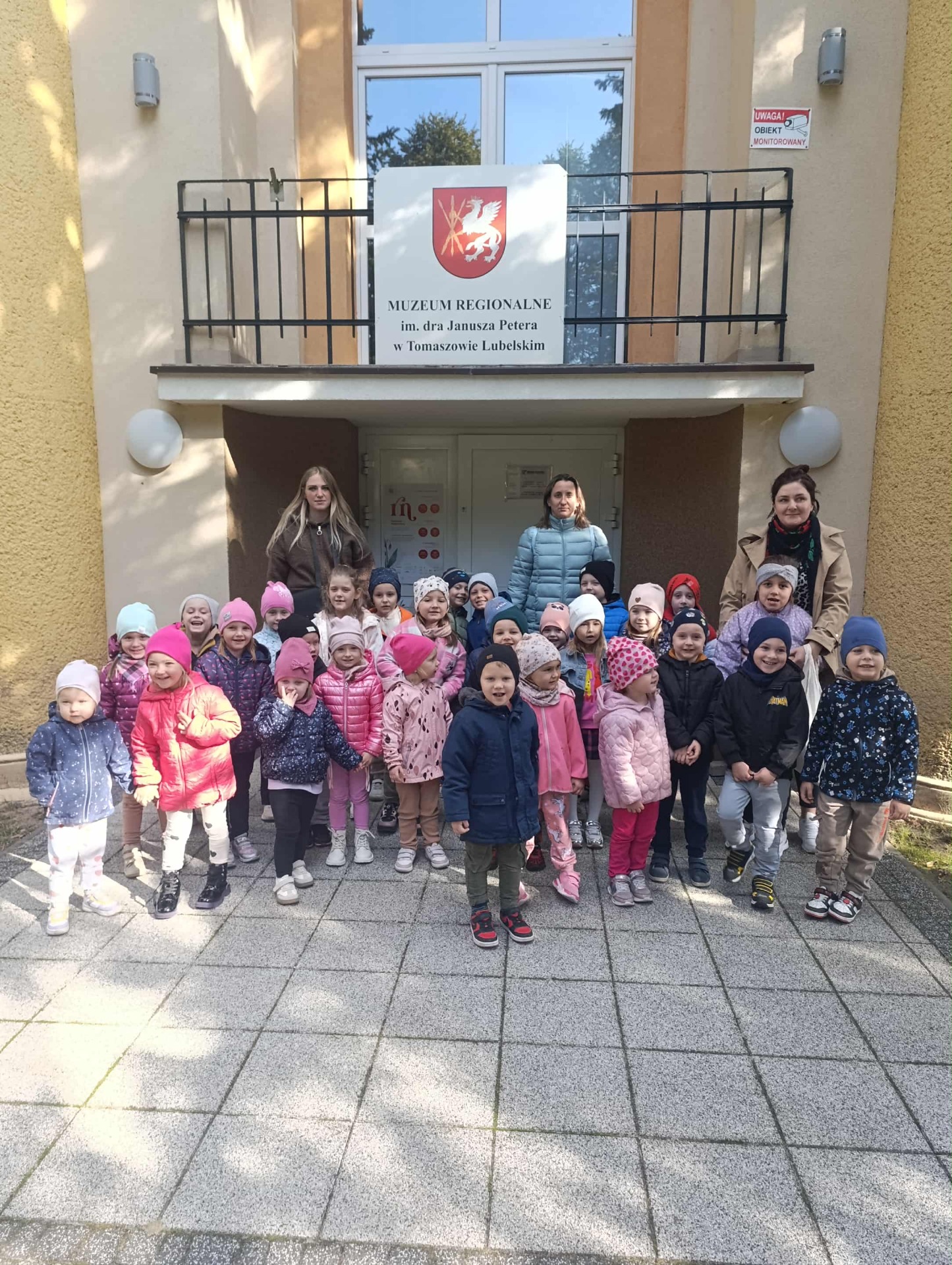7 października dzieci z przedszkola wybrały się na wycieczkę do Muzeum Regionalnego im. dr. Janusza Petera w Tomaszowie Lubelskim. Po krótkim wprowadzeniu historycznym "Bolesław Chrobry i jego czasy" dzieci uczestniczyły w warsztatach "Zaprojektuj swoją odznakę !”. Podczas zajęć dzieci inspirowały się najstarszymi polskimi monetami i wykonały pamiątkową przypinkę. Następnie wybraliśmy się na wycieczkę na pobliską pocztę. Zaciekawione dzieci słuchały informacji o pracy urzędnika poczty. Dzięki tej wycieczce dowiedziały się, że można tam nie tylko wysłać list czy paczkę, ale także załatwić różne sprawy. Przedszkolaki poznały jaka jest droga listu od nadawcy do adresata. Na zakończenie wycieczki wyruszyliśmy do pobliskiego parku obserwować zmiany, jakie zaszły wraz z nadejściem nowej pory roku – jesieni. W tym dniu pogoda była wyjątkowa piękna. Nie brakowało promieni słońca i ciepłych podmuchów wiatru. Dzieci zmęczone ale radosne wróciły do przedszkola.