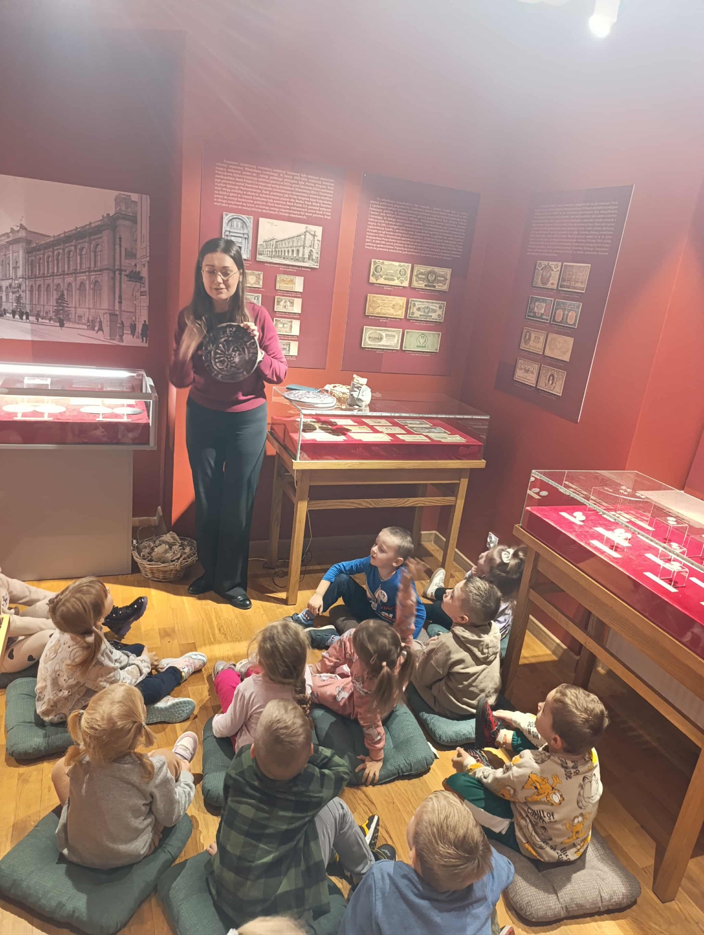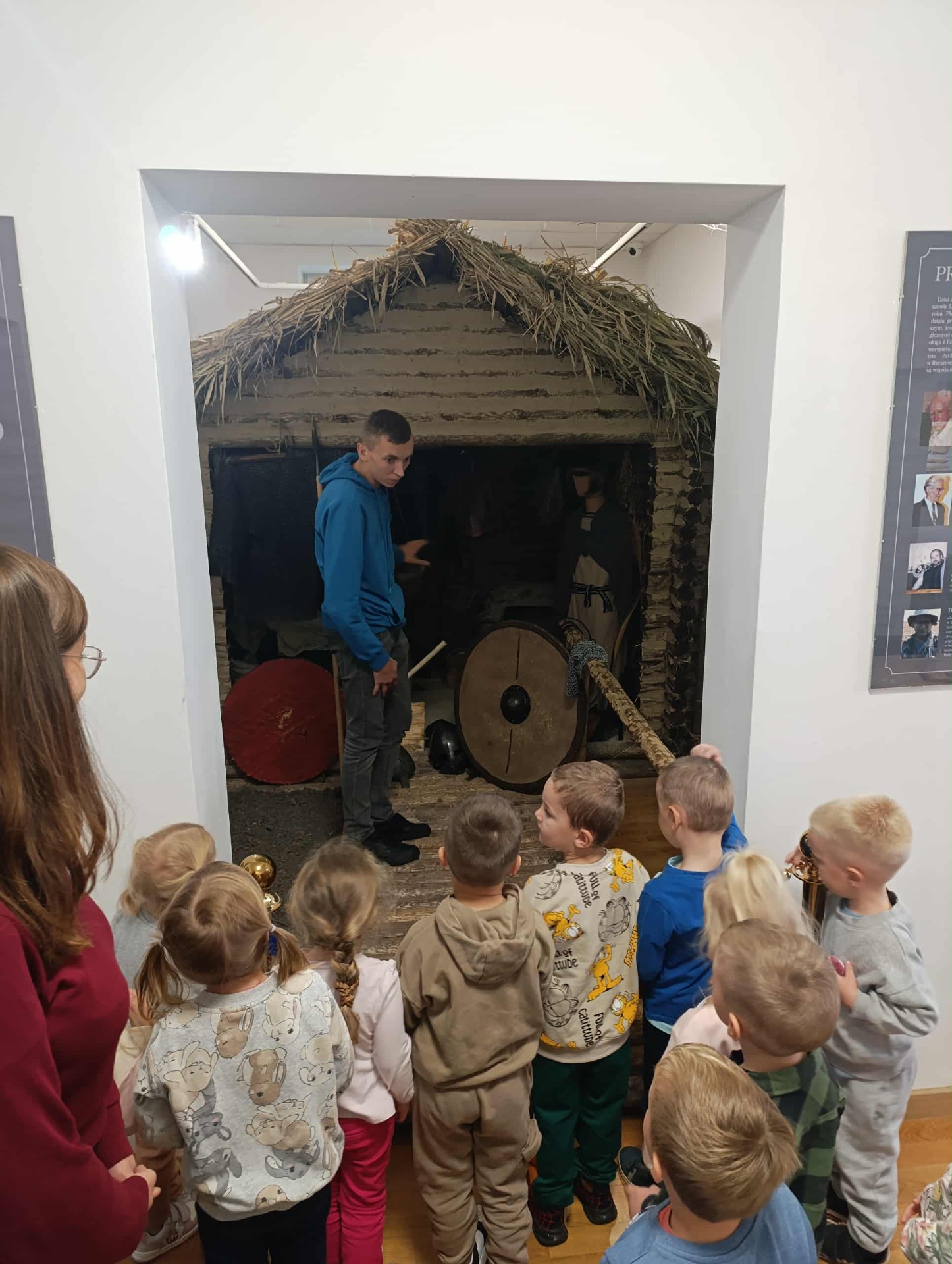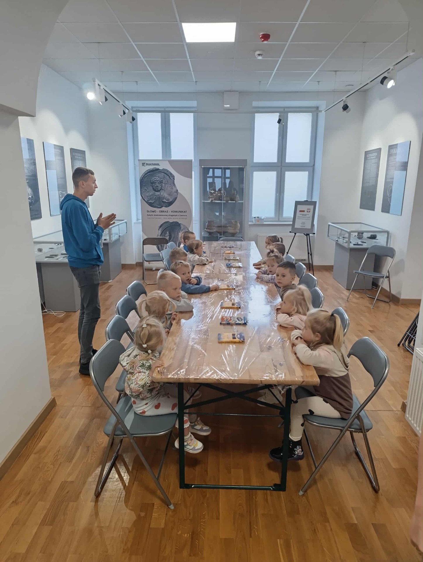 7 października dzieci z przedszkola wybrały się na wycieczkę do Muzeum Regionalnego im. dr. Janusza Petera w Tomaszowie Lubelskim. Po krótkim wprowadzeniu historycznym "Bolesław Chrobry i jego czasy" dzieci uczestniczyły w warsztatach "Zaprojektuj swoją odznakę !”. Podczas zajęć dzieci inspirowały się najstarszymi polskimi monetami i wykonały pamiątkową przypinkę. Następnie wybraliśmy się na wycieczkę na pobliską pocztę. Zaciekawione dzieci słuchały informacji o pracy urzędnika poczty. Dzięki tej wycieczce dowiedziały się, że można tam nie tylko wysłać list czy paczkę, ale także załatwić różne sprawy. Przedszkolaki poznały jaka jest droga listu od nadawcy do adresata. Na zakończenie wycieczki wyruszyliśmy do pobliskiego parku obserwować zmiany, jakie zaszły wraz z nadejściem nowej pory roku – jesieni. W tym dniu pogoda była wyjątkowa piękna. Nie brakowało promieni słońca i ciepłych podmuchów wiatru. Dzieci zmęczone ale radosne wróciły do przedszkola.