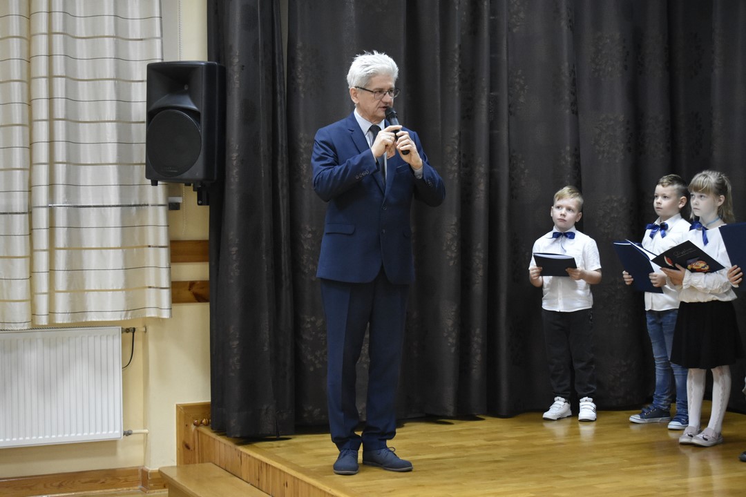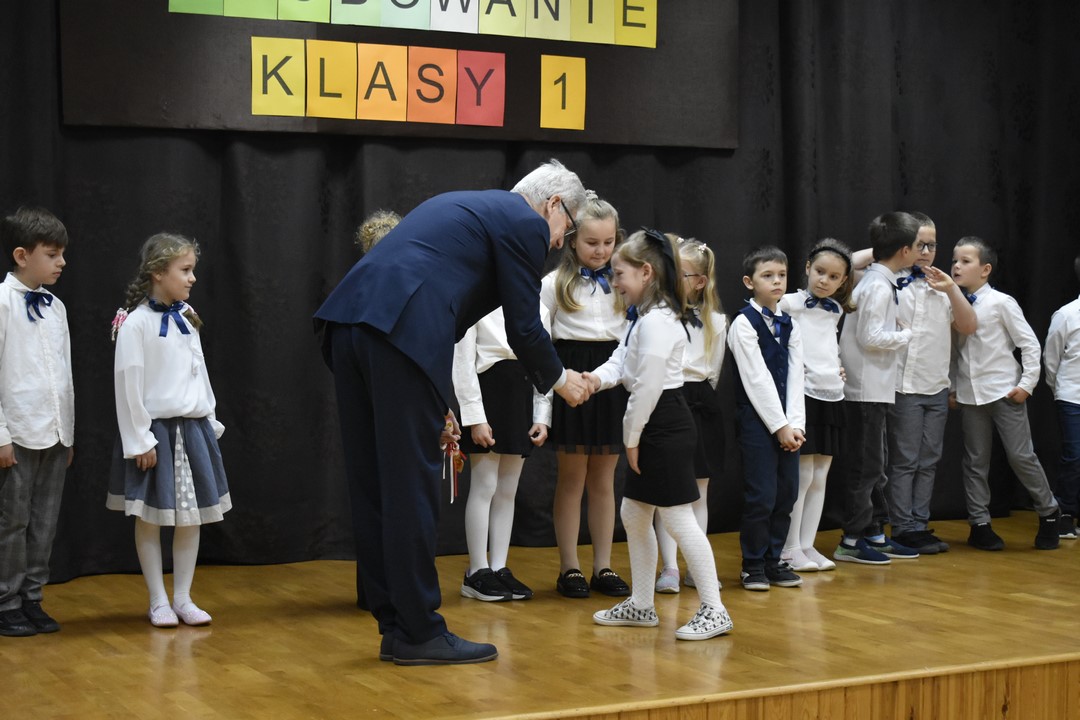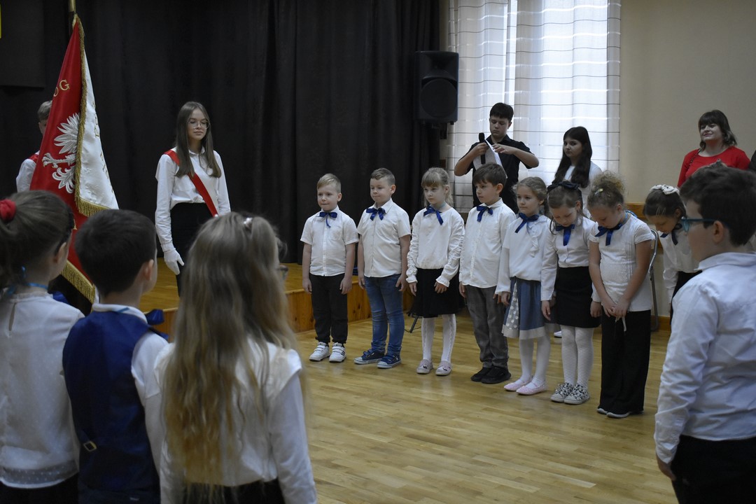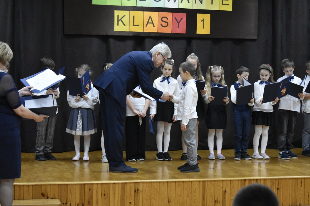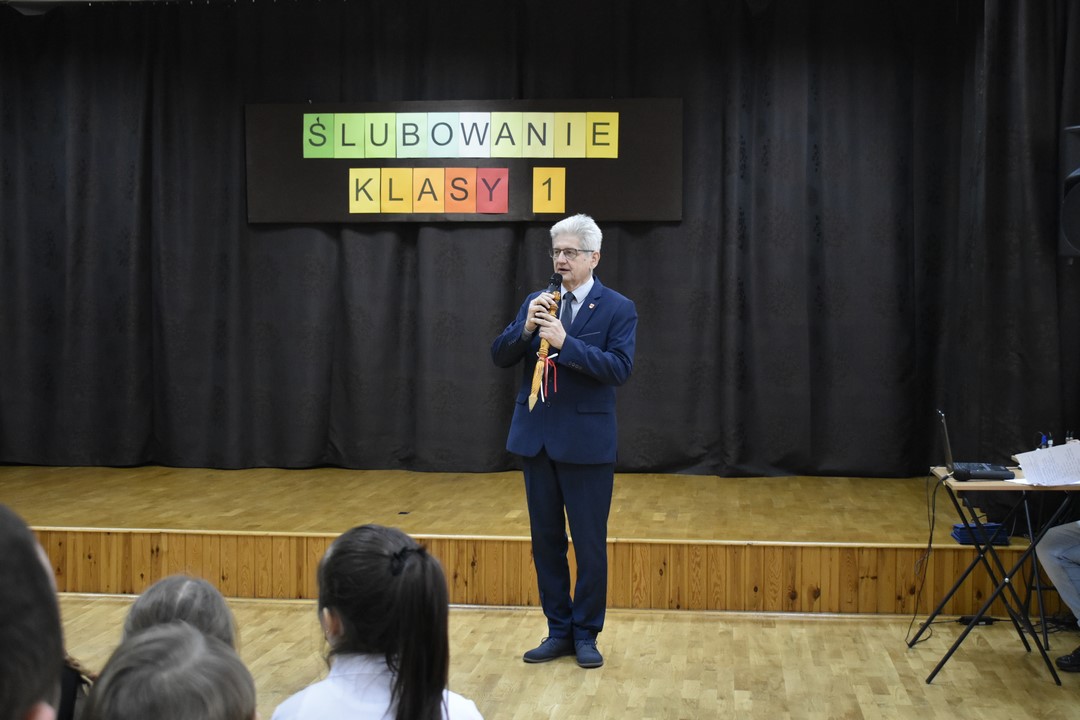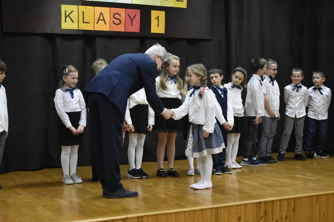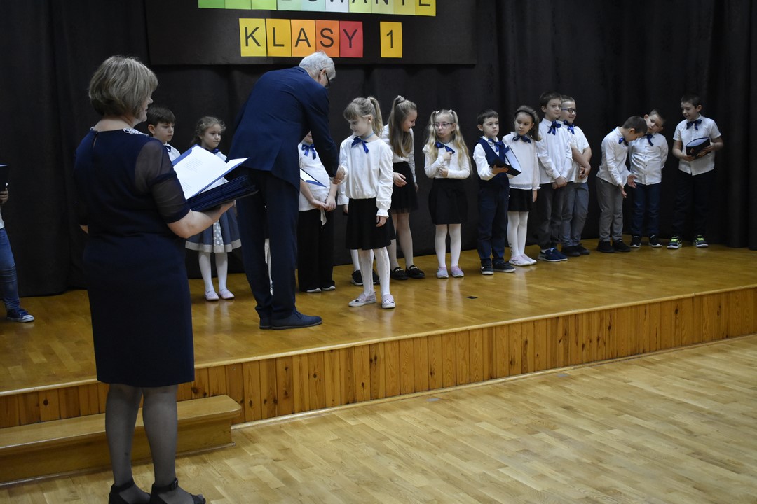 Dnia 24 października 2025r. odbyło się uroczyste ślubowanie i pasowanie uczniów klasy pierwszej. Po kilku tygodniach poznawania norm i zasad panujących w naszej szkole, poznania historii i tradycji szkoły oraz wyuczeniu się wielu wierszyków i piosenek uczniowie byli gotowi przystąpić do tak ważnego wydarzenia. Ślubowanie złożyło 17 uczniów. Po dokonaniu pasowania przez p. Dyrektora uczniowie otrzymali pamiątkowe dyplomy oraz słodkie upominki od rodziców.
