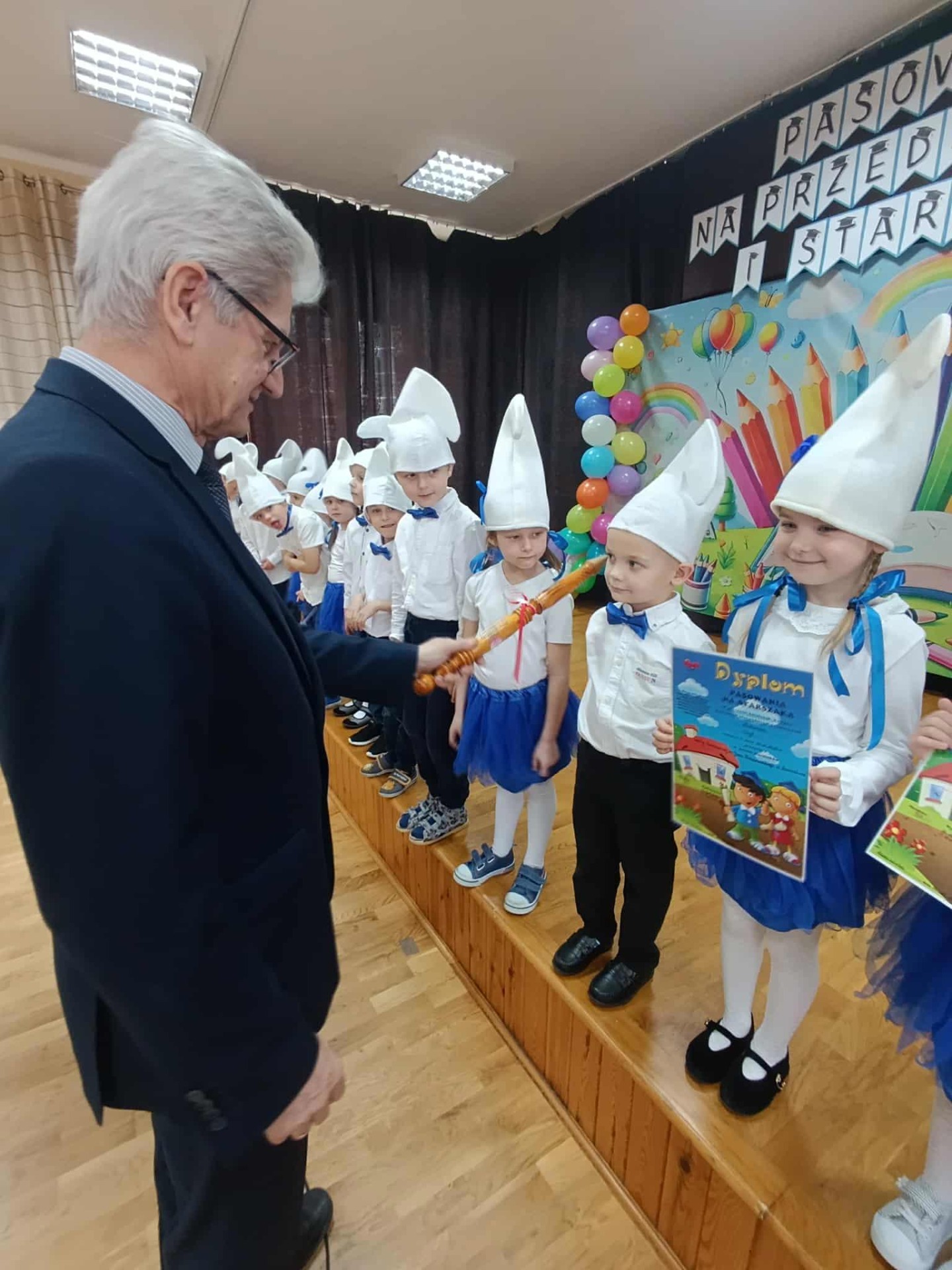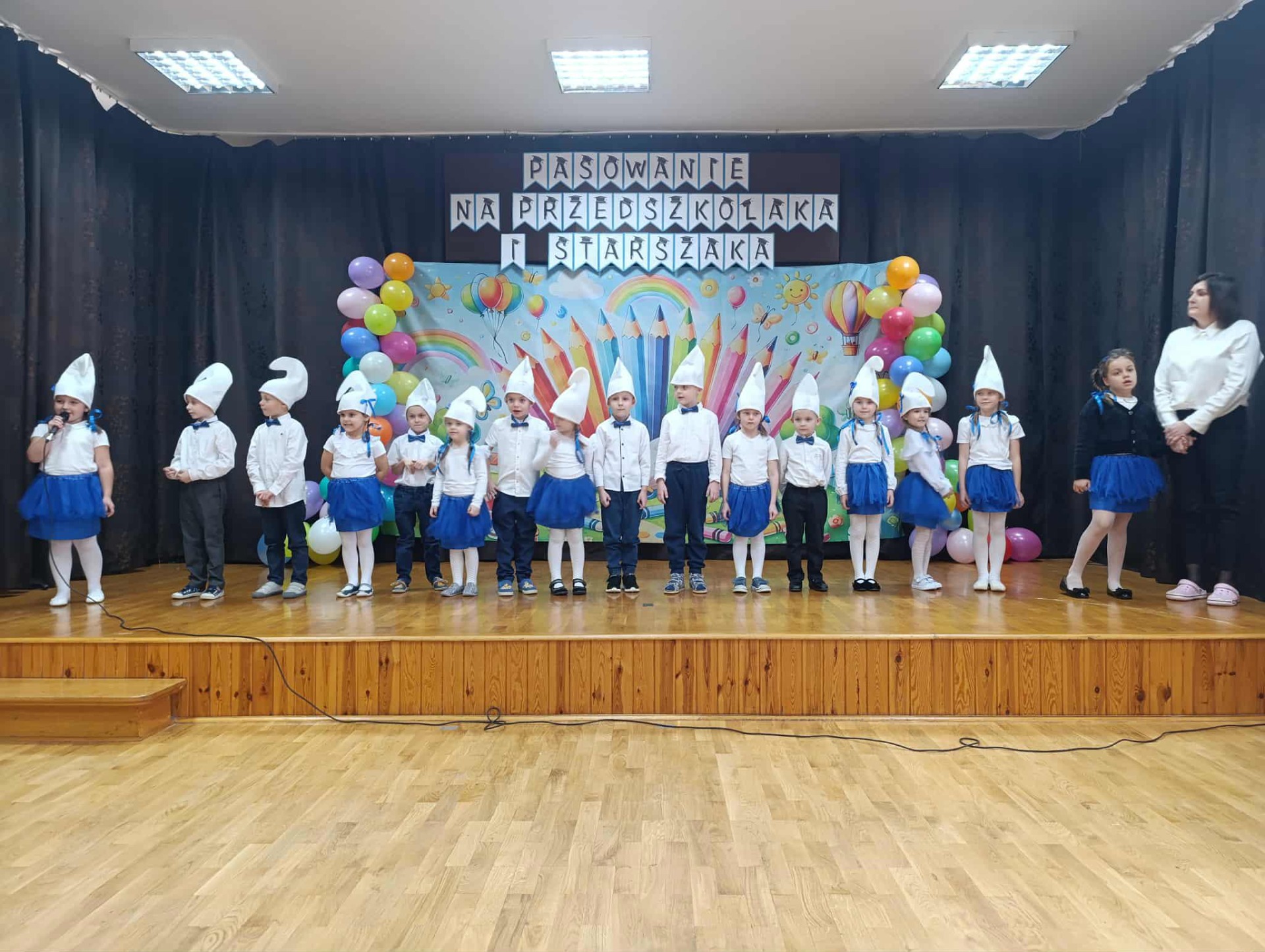 Pasowanie na przedszkolaka i starszaka to wyjątkowa uroczystość, która w naszym przedszkolu odbyła się 14 listopada. Od samego rana trwały przygotowania, a w sali gromadzili się goście. Uroczystość rozpoczęły występy dzieci z grupy „Żabki”, a następnie ze „Smerfów”. Mali artyści zaprezentowali przygotowane piosenki, tańce oraz wierszyki. Dla niektórych dzieci był to pierwszy, bardzo ważny występ. Po części artystycznej nastąpił akt pasowania, czyli dotknięcie ramienia każdego przedszkolaka ogromną kredką przez Pana Dyrektora. Dla przedszkolaków było to wielkie przeżycie, a dla rodziców powód do dumy i zadowolenia ze swoich pociech.