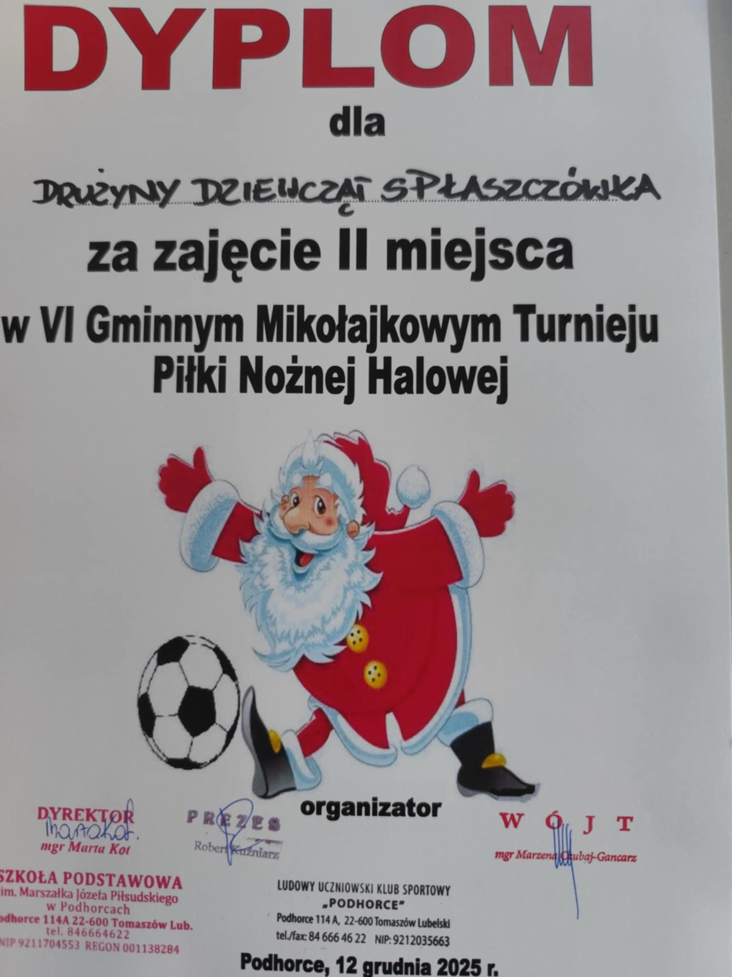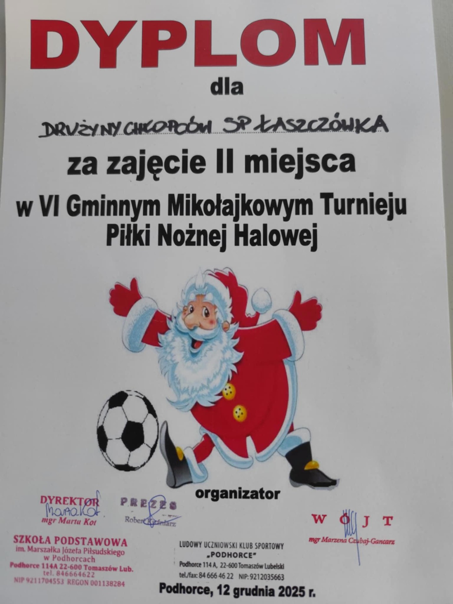 W piątek, 12 grudnia, uczniowie Szkoły Podstawowej w Łaszczówce wzięli udział w Mikołajkowym Turnieju Piłki Nożnej dziewcząt i chłopców, który odbył się w Podhorcach. W sportowej rywalizacji uczestniczyły drużyny ze szkół podstawowych z Łaszczówki, Sabaudii, Podhorzec oraz Pasiek.