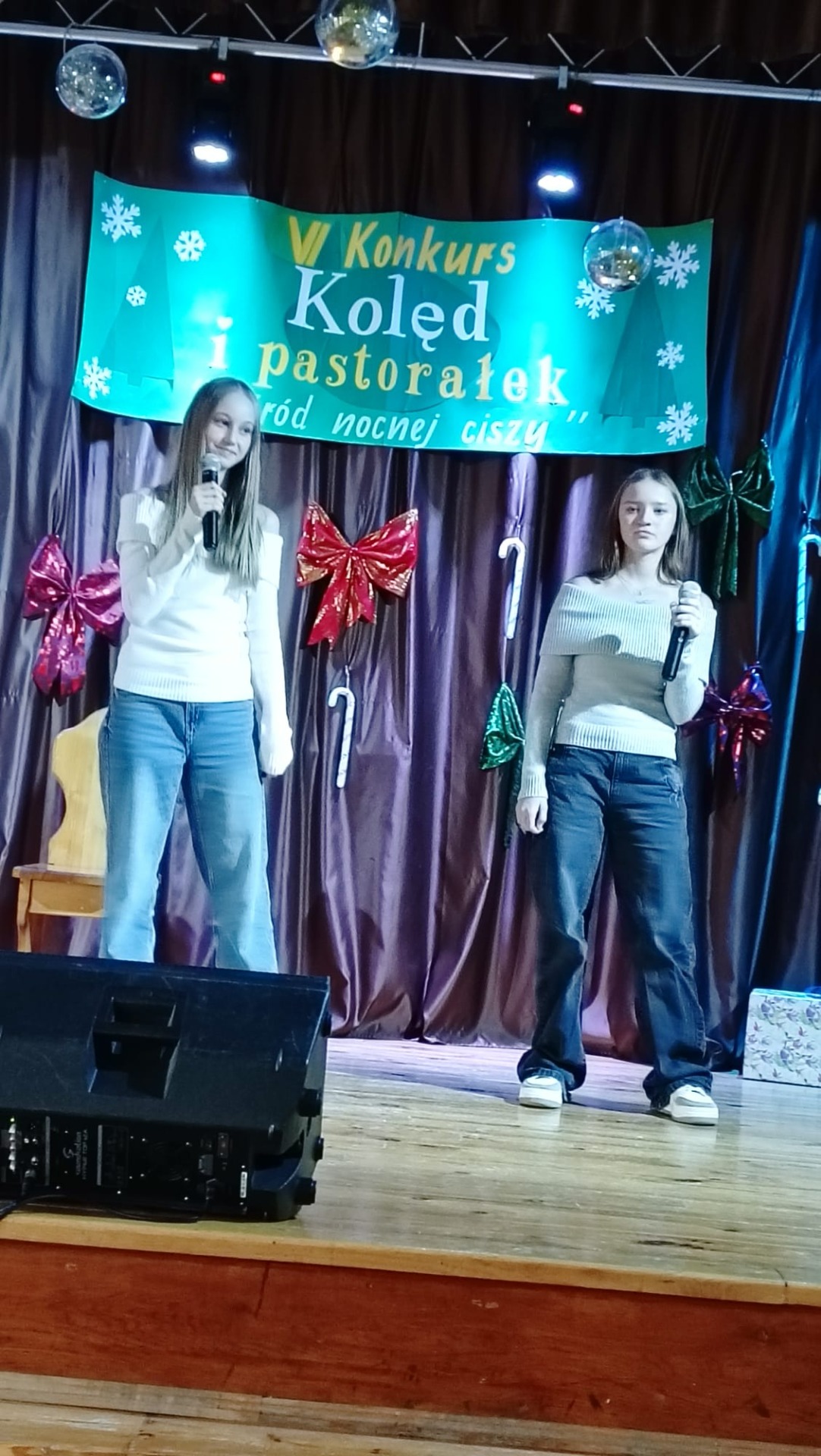 17 grudnia 2025 roku w Gminnym Ośrodku Kultury w Tomaszowie Lubelskim z/s w Podhorcach odbył się VI Gminny Konkurs Kolęd i Pastorałek ,,Wśród Nocnej Ciszy''. Naszą szkołę reprezentował jeden duet tj. Sara Grzesik i Anna Kobielarz z kl. VIII zdobywając wyróżnienie oraz pięcioro solistów: